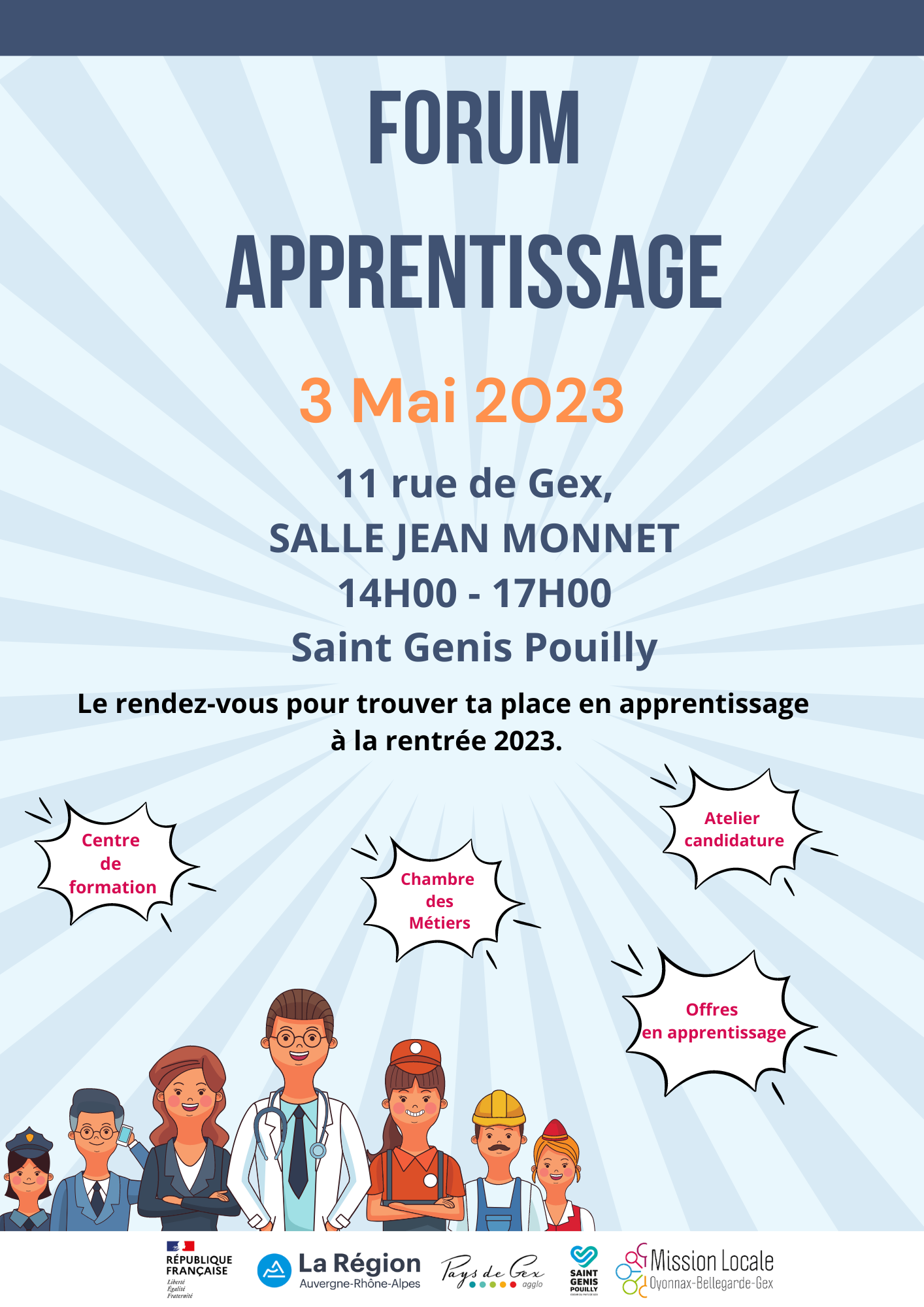 Forum « Apprentissage » le 3 mai 2023 de 14h00 à 17h00 à la salle Jean Monnet St-Genis-Pouilly