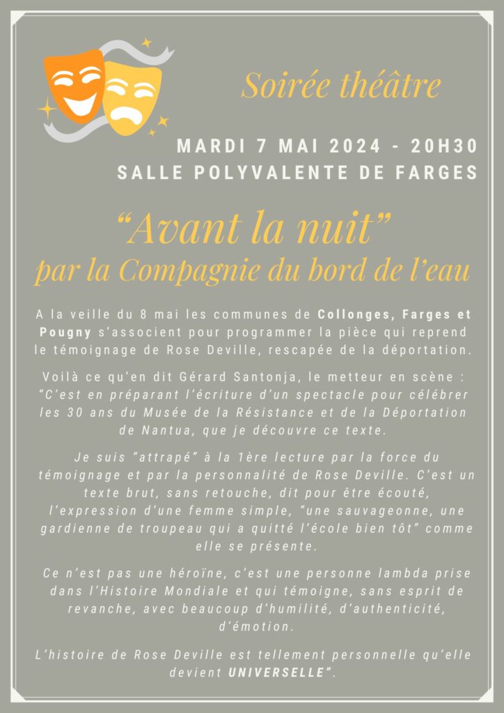 Mardi 7 mai 2024 à 20h30 à la salle polyvalente
