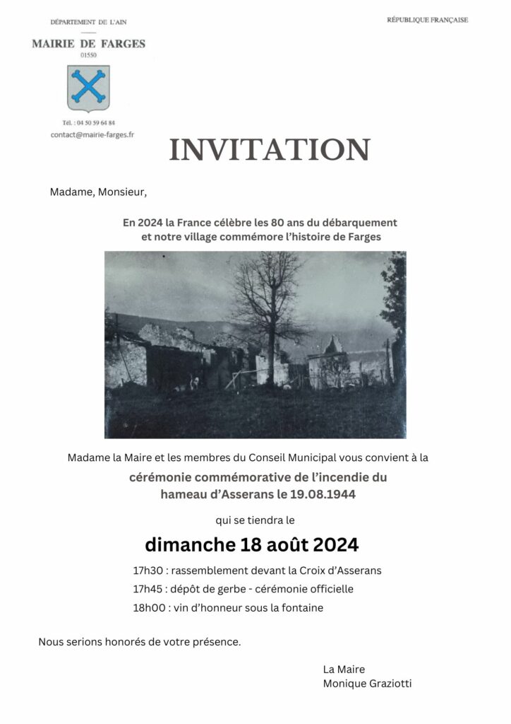 Municipalité – commémoration de l’incendie du hameau d’Asserans le 19.08.1944