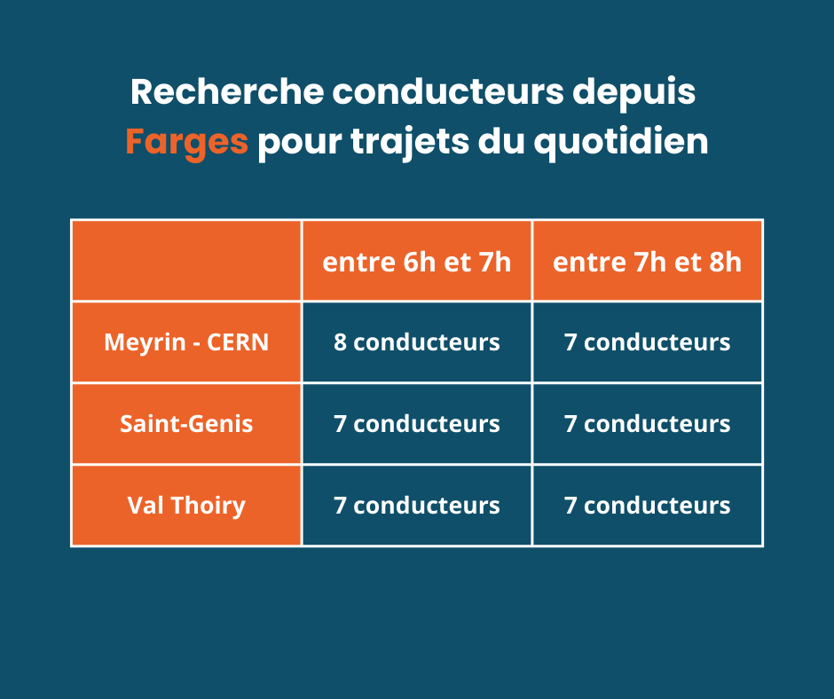Dans ce visuel, découvrez le nombre de conducteurs qu’il faudrait par destination depuis Farges pour avoir un temps d’attente satisfaisant ! Ca parait peu mais ça peut faire toute la différence.