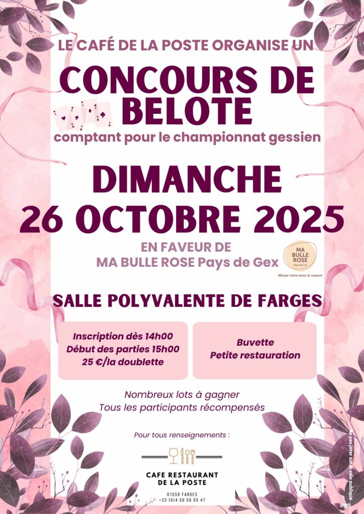 Café de la Poste – concours de belote en faveur de Ma Bulle Rose Pays de Gex