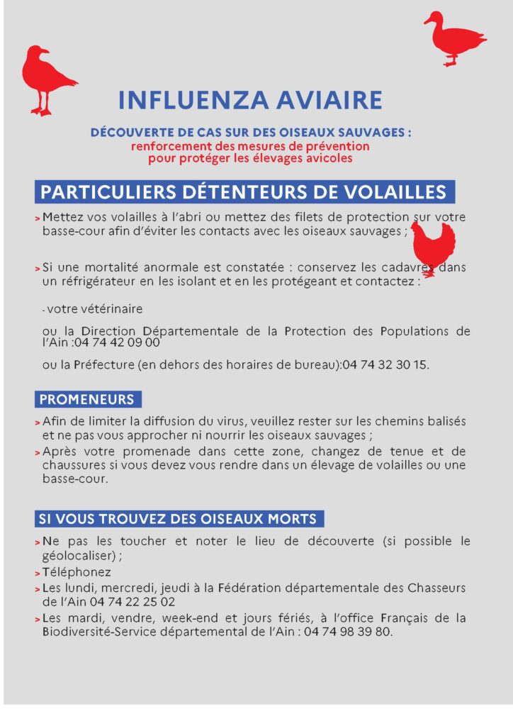 Préfecture de l’Ain – Influenza aviaire – Risque élevé