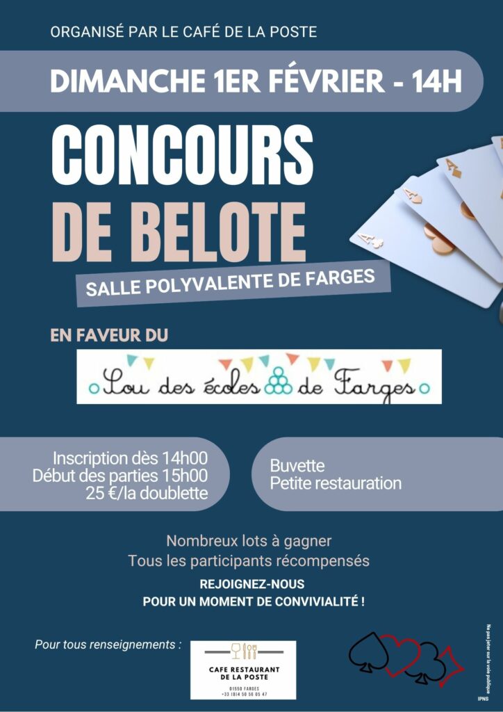 Café de la Poste – concours de belote en faveur du Sou des Écoles de Farges