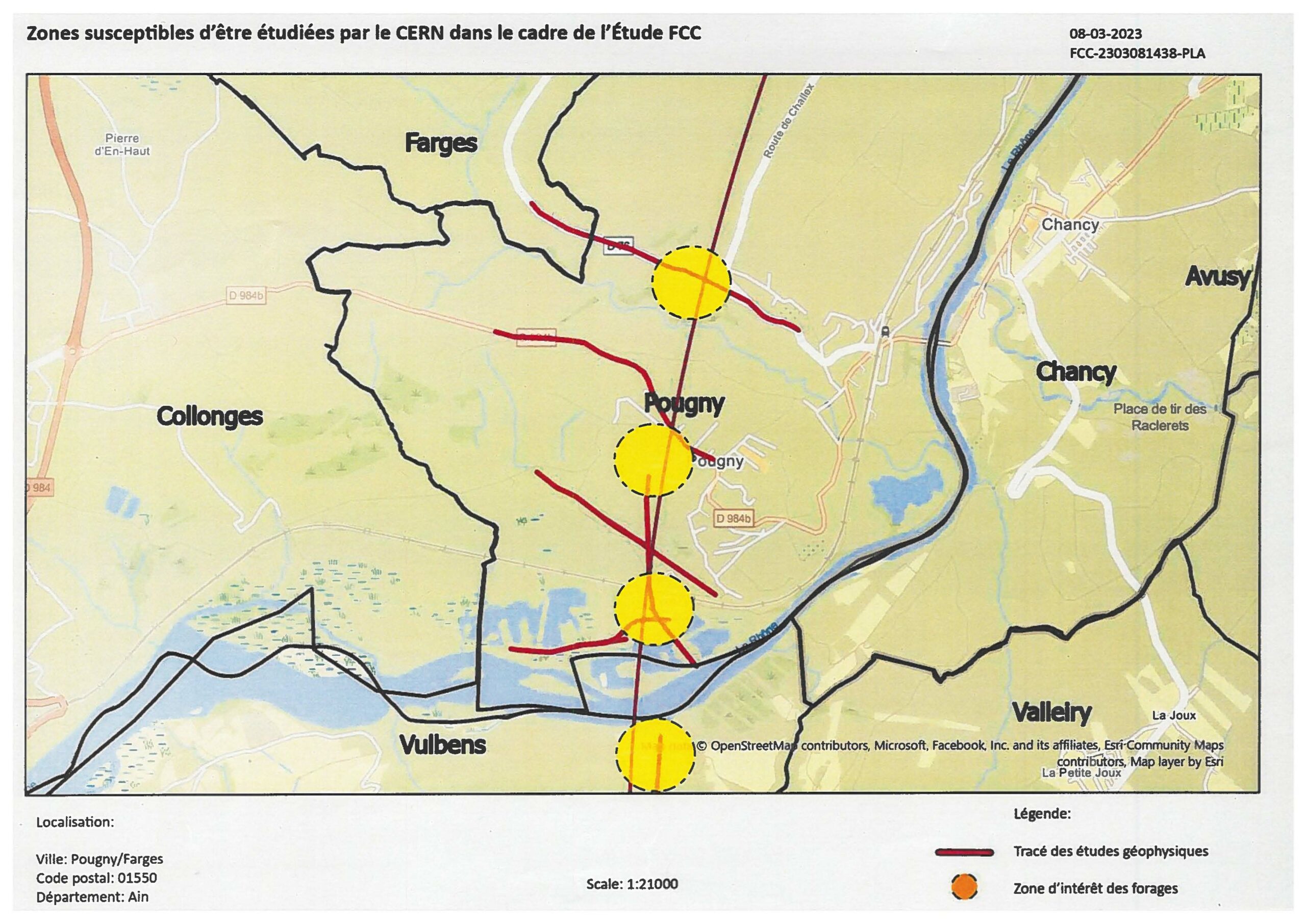 Le CERN étudie actuellement la faisabilité technique d’un accélérateur, le Futur Collisionneur Circulaire (FCC), dont la réalisation pourrait être décidée par ses Etats membres vers 2028. Dans le cadre de cette étude le CERN a besoin de recueillir et de compiler des données de nature géographique, géologique et environnementale.