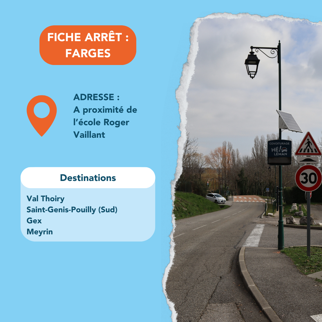 Léaz, Longeray – Léaz, Grésin – Léaz, Centre – Pougny, Village – Pougny, Gare – Péron, Cimetière – Péron, Logras – Péron, Sur Greny – Péron, Feigères – Farges, Centre – Farges, Chemin du Quart d’Avo – Farges, Airans – Collonges, Centre – Collonges, Technoparc – Collonges, Cimetière – Collonges, Ecorans – Saint Jean-de-Gonville, Sous Saint-Jean – Saint Jean-de-Gonville, Mornex – Saint Jean-de-Gonville, Eglise – Challex, Mairie – Thoiry/Val-Thoiry – Thoiry, Mairie – Thoiry, Fenières – Saint-Genis Pouilly, Maison médicale – CERN, Porte de France – La Plaine, Gare